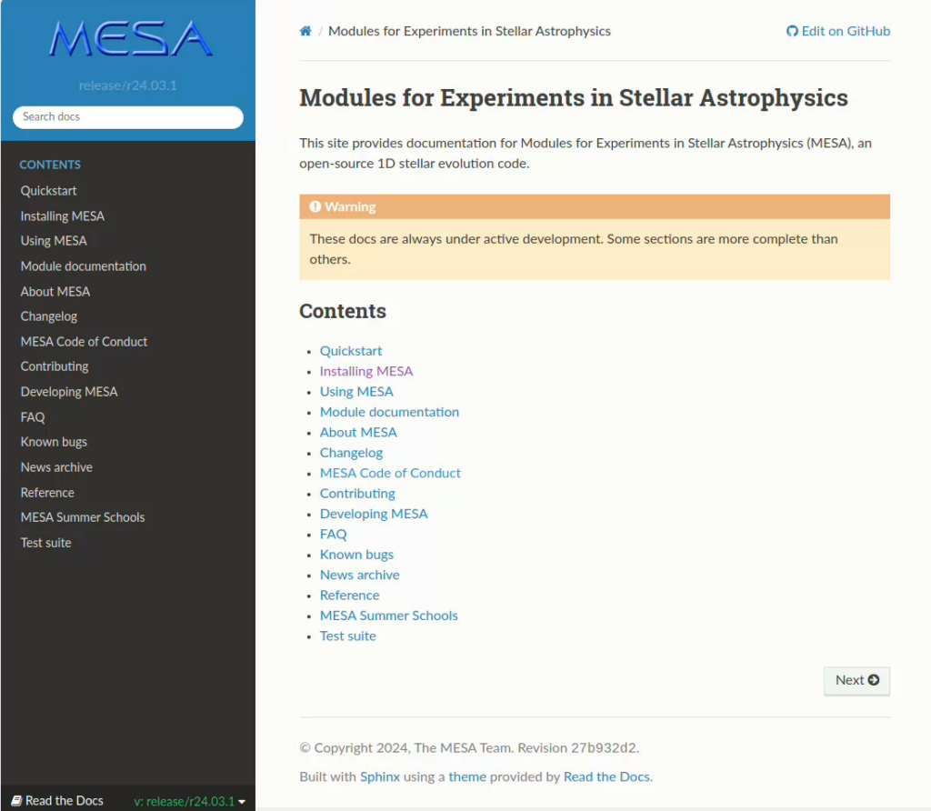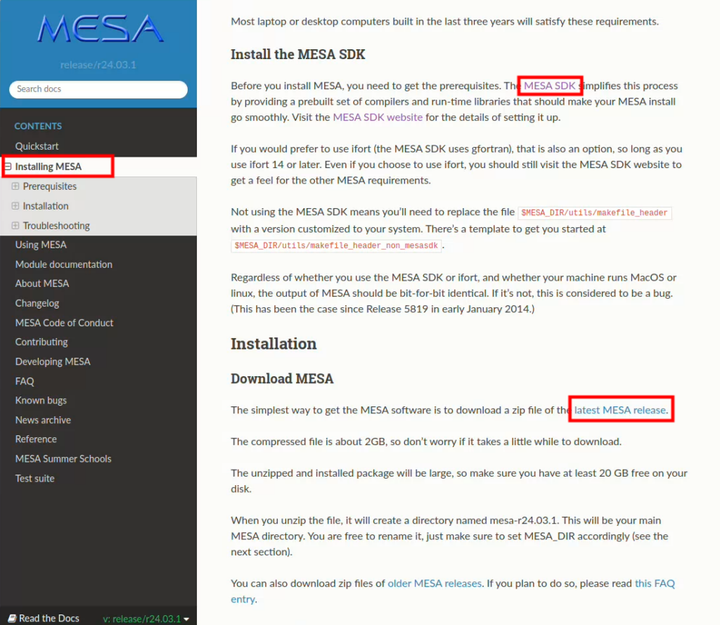 MESA官网https://docs.mesastar.org/en/GIthub地址:https://github.com/MESAHub/mesa/releases
