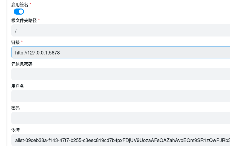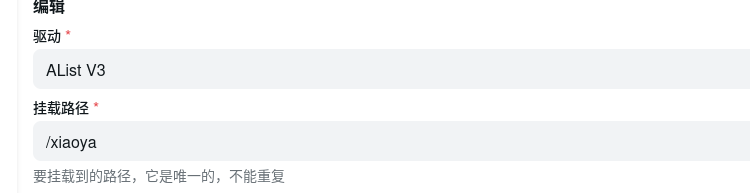 填写挂载地址,根文件夹路径,小雅alist的链接(http://ip:5678)和令牌