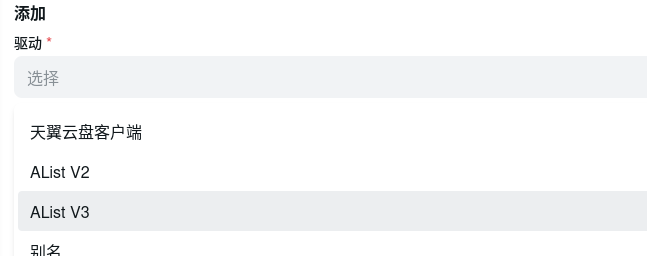 进入到自己的alist中点击管理-存储-添加-驱动,选择Alist V3